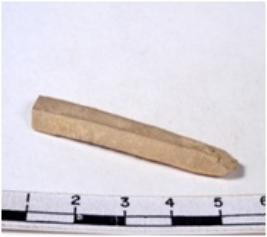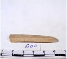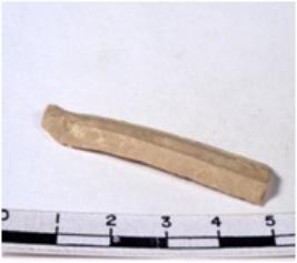 | Description / विवरण | A fragment of a rectangular shaped chert blade showing dorsal sides with sharp edges having smooth surface and triangular section. |