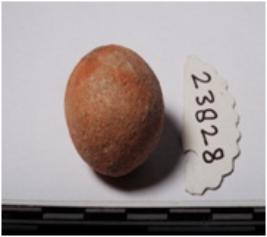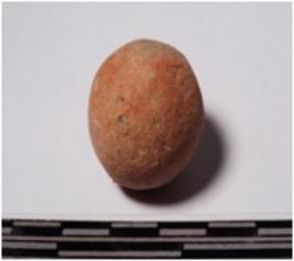 | Description / विवरण | A terracotta sling ball round in shape of smooth surface. |