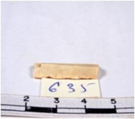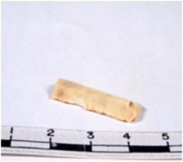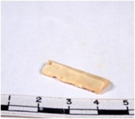 | Description / विवरण | A fragment of a rectangular shaped chert blade showing dorsal sides with sharp edges having smooth surface and triangular section. |