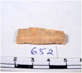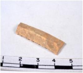| Description / विवरण | A fragment of a rectangular shaped chert blade showing dorsal sides with sharp cutting edges having smooth surface and triangular section. |