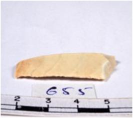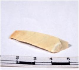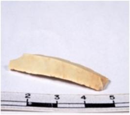 | Description / विवरण | A fragment of a rectangular shaped chert blade showing parallel sides with sharp cutting edges having smooth surface and triangular section. |
