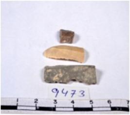 | Description / विवरण | A fragment of a rectangular shaped chert blade showing dorsal sides with sharp edges having smooth surface and triangular section. |