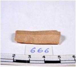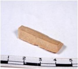 | Description / विवरण | A fragment of a rectangular shaped chert blade showing dorsal sides with sharp edges having smooth surface and triangular section. |