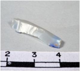 | Description / विवरण | A fragment of a rectangular shaped chalcedony blade showing dorsal sides with sharp cutting edges having smooth surface and uneven section. |