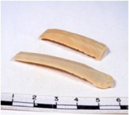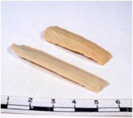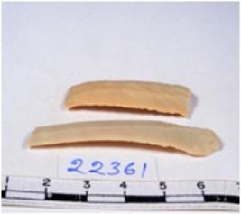 | Description / विवरण | A fragment of a rectangular shaped chert blade showing dorsal sides with sharp edges having smooth surface and triangular section. |