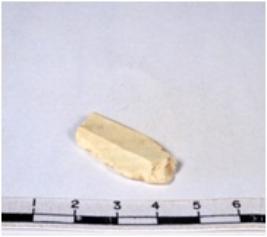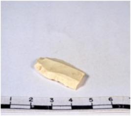 | Description / विवरण | A fragment of a rectangular shaped chert blade showing parallel sides with sharp edges having smooth surface and uneven section. |