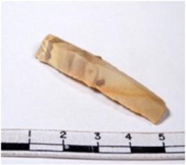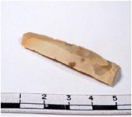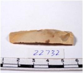 | Description / विवरण | A fragment of a rectangular shaped chert blade showing dorsal sides with sharp edges having smooth surface and triangular section. |