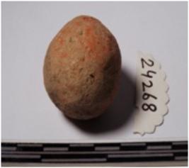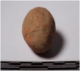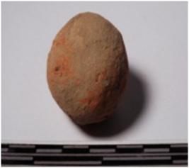 | Description / विवरण | A terracotta sling ball round in shape of smooth surface. |