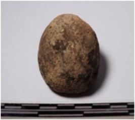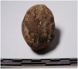 | Description / विवरण | A fragment of a terracotta round shaped sling ball of smooth surface. |
