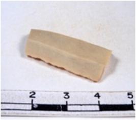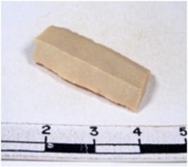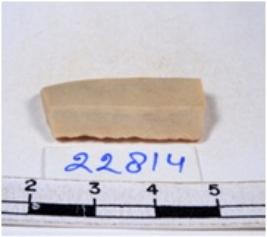 | Description / विवरण | A fragment of a rectangular shaped chert blade showing dorsal sides with sharp cutting edges having smooth surface and triangular section. |
