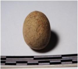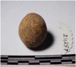 | Description / विवरण | A terracotta sling ball round in shape of smooth surface. |