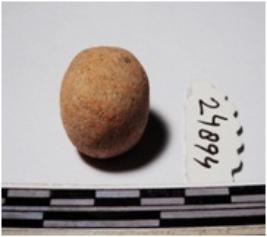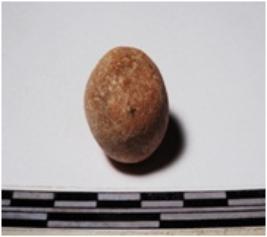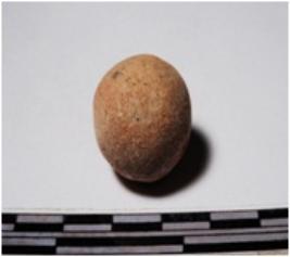 | Description / विवरण | A terracotta sling ball round in shape of smooth surface. |