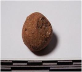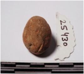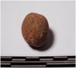 | Description / विवरण | A terracotta small sling ball round in shape of smooth surface. |