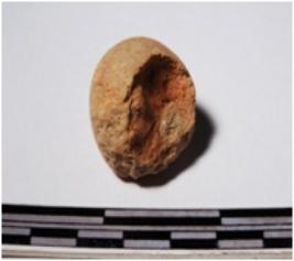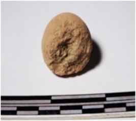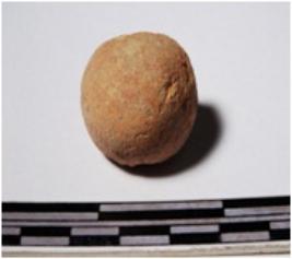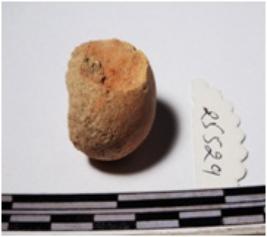 | Description / विवरण | A fragment of a terracotta sling ball globular in shape of smooth surface. |