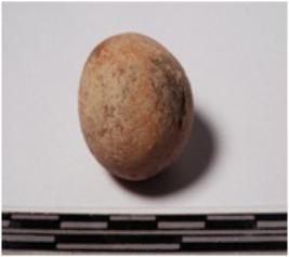 | Description / विवरण | A terracotta round in shaped sling ball of smooth surface. |