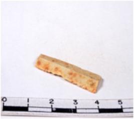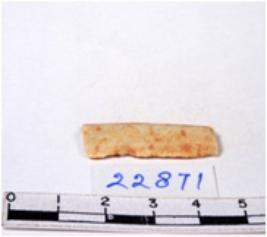 | Description / विवरण | A fragment of a rectangular shaped chert blade showing dorsal sides having smooth surface and triangular section. |