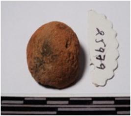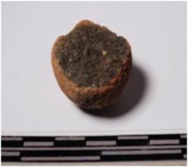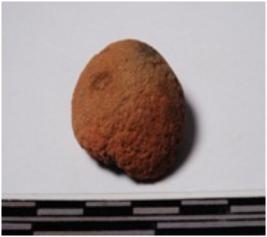 | Description / विवरण | A fragment of a terracotta sling ball of rough surface. |
