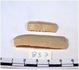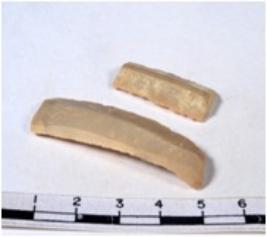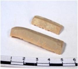 | Description / विवरण | A fragment of a rectangular shaped chert blade showing dorsal sides with sharp edges having smooth surface and triangular section. |
