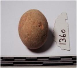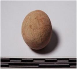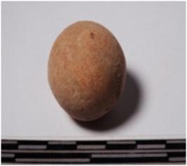 | Description / विवरण | A terracotta sling ball round in shape of smooth surface. |