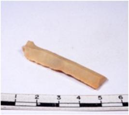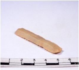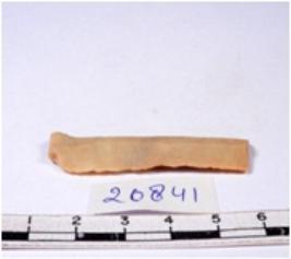 | Description / विवरण | A fragment of a rectangular shaped chert blade showing dorsal sides with sharp cutting edges having smooth surface and triangular section. |