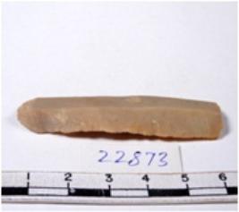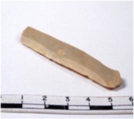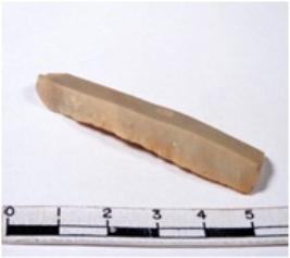 | Description / विवरण | A fragment of a rectangular shaped chert blade showing dorsal sides with sharp edges having smooth surface and triangular section. |