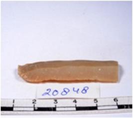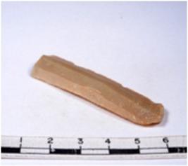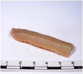 | Description / विवरण | A fragment of a rectangular shaped chert blade showing dorsal sides with sharp edges having smooth surface and triangular section. |