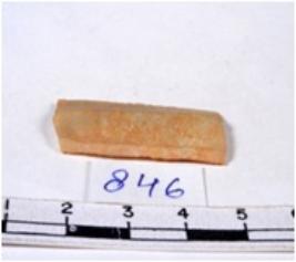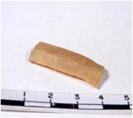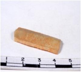 | Description / विवरण | A fragment of a rectangular shaped chert blade showing dorsal sides with sharp cutting edges having smooth surface and triangular section. |