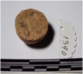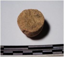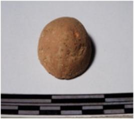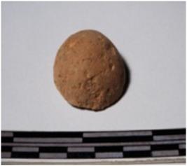 | Description / विवरण | A fragment of a terracotta sling ball round in shape of smooth surface. |