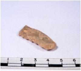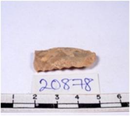 | Description / विवरण | A fragment of a rectangular shaped chert blade showing dorsal sides with sharp edges having smooth surface and triangular section. |