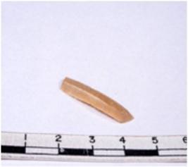| Description / विवरण | A fragment of a rectangular shaped chert blade showing dorsal sides with sharp edges having smooth surface and triangular section. |