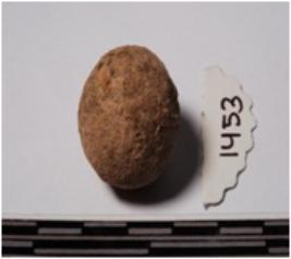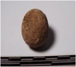 | Description / विवरण | A terracotta round in shaped sling ball of smooth surface. |