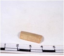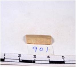 | Description / विवरण | A fragment of a rectangular shaped chert blade showing dorsal sides with sharp edges having smooth surface and triangular section. |