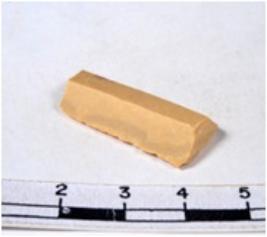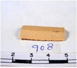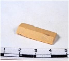 | Description / विवरण | A fragment of a rectangular shaped chert blade showing dorsal sides with sharp cutting edges having smooth surface and triangular section. |
