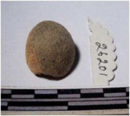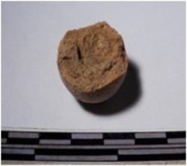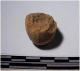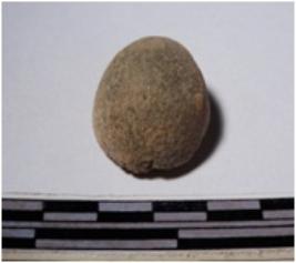 | Description / विवरण | A fragment of a terracotta sling ball globular in shape of smooth surface. |
