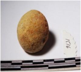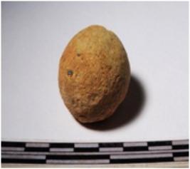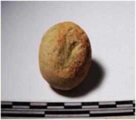 | Description / विवरण | A terracotta sling ball round in shape of smooth surface. |