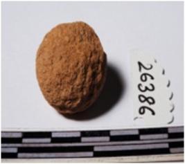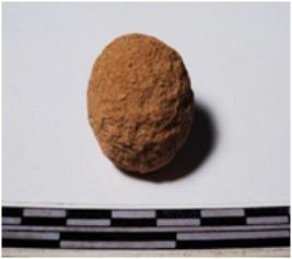 | Description / विवरण | A terracotta round in shape sling ball of rough surface. |