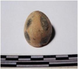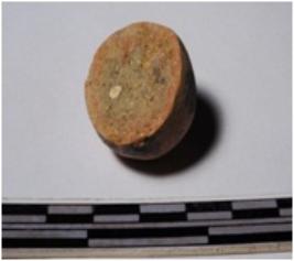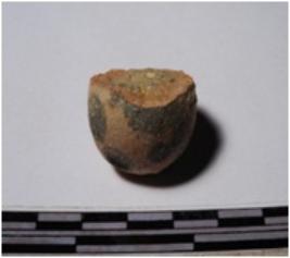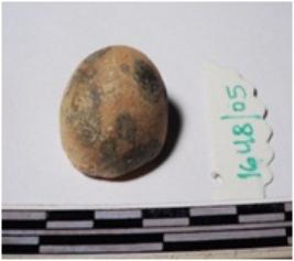 | Description / विवरण | A fragment of a terracotta round shaped sling ball of smooth surface. |