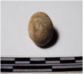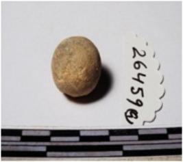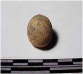 | Description / विवरण | A terracotta round in shape sling ball of rough surface. |