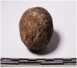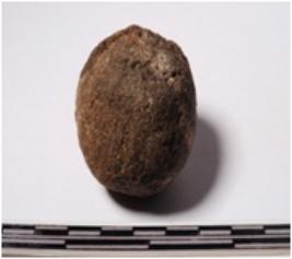 | Description / विवरण | A terracotta round in shaped sling ball of smooth surface. |