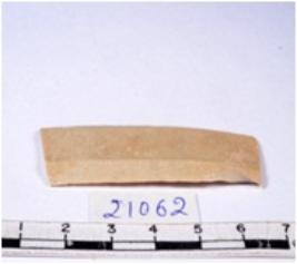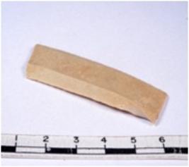 | Description / विवरण | A fragment of a rectangular shaped chert blade showing parallel sides with sharp edges having smooth surface and uneven section. |