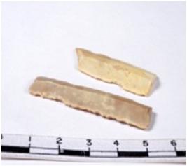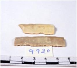 | Description / विवरण | A fragment of a rectangular shaped chert blade showing dorsal sides with sharp cutting edges having smooth surface and triangular section. |