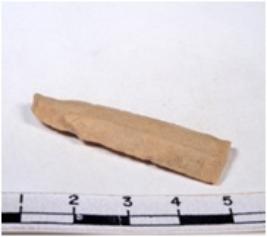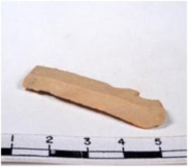 | Description / विवरण | A fragment of a rectangular shaped chert blade showing dorsal sides with sharp edges having smooth surface and triangular section. |