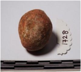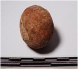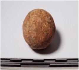 | Description / विवरण | A terracotta round in shaped sling ball of smooth surface. |