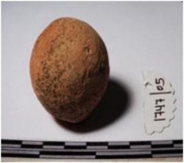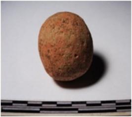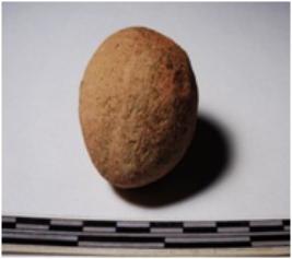 | Description / विवरण | A terracotta round shaped sling ball of smooth surface. |
