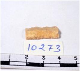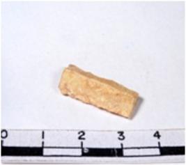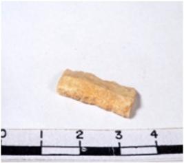 | Description / विवरण | A fragment of a rectangular shaped chert blade showing dorsal sides with sharp cutting edges having smooth surface and triangular section. |