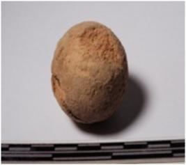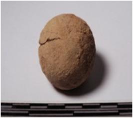 | Description / विवरण | A terracotta sling ball round in shape of smooth surface. |