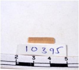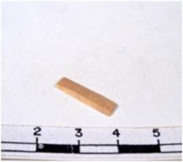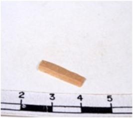 | Description / विवरण | A fragment of a rectangular shaped chert blade showing dorsal sides with sharp cutting edges having smooth surface and triangular section. |