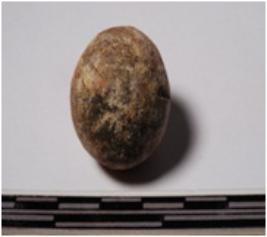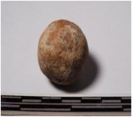 | Description / विवरण | A terracotta round in shaped sling ball of smooth surface. |