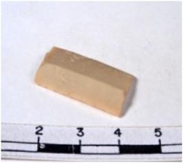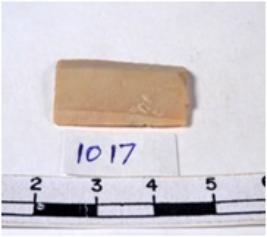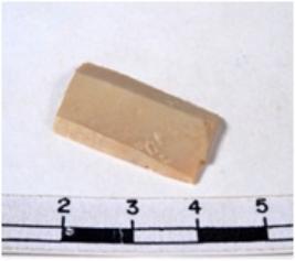 | Description / विवरण | A fragment of a rectangular shaped chert blade showing dorsal sides with sharp cutting edges having smooth surface and triangular section. |