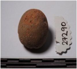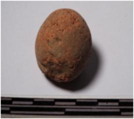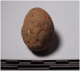 | Description / विवरण | A terracotta round in shape sling ball of smooth surface. |